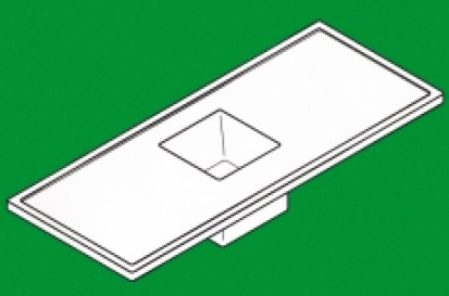 Polipropylenowy blat roboczy ze zlewem, formowany wtryskowo z podniesionym obrzeżem.