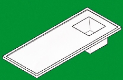 Polipropylenowy blat roboczy ze zlewem, formowany wtryskowo z podniesionym obrzeżem.