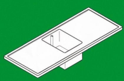 Polipropylenowy blat roboczy ze zlewem, formowany wtryskowo z podniesionym obrzeżem.