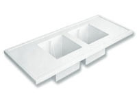 Polipropylenowy blat roboczy ze zlewem, formowany wtryskowo z podniesionym obrzeżem.