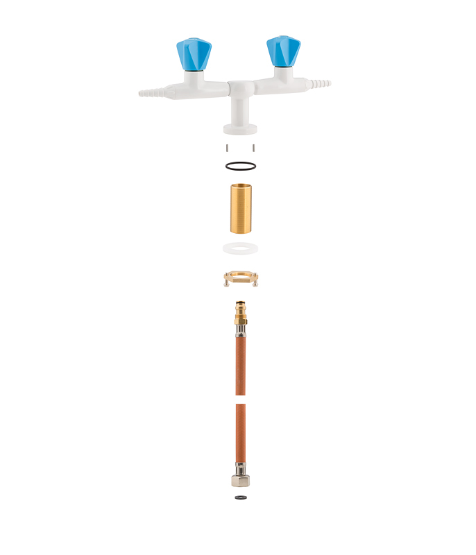 Opis • zabezpieczenie przed przypadkowym otwarciem zaworu Press & Turn [wciśnij i przekręć] • śruba wymienna 3/8" zgodnie z DIN 12898 • media zgodnie z poniższą tabelą • zestaw montażowy z kołkami blokującymi przed przekręceniem