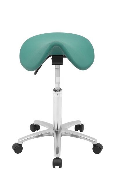 Obrotowy niski hoker. Antypoślizgowe i ergonomiczne siedzisko w kształcie siodła wykonane z miękkiego poliuretanu. Regulacja wysokości i kąta nachylenia siedziska w celu zachowania prawidłowej sylwetki siedzącej osoby. Podstawa z estetycznego i wytrzymałego aluminium. Hoker dostępny na kółkach.