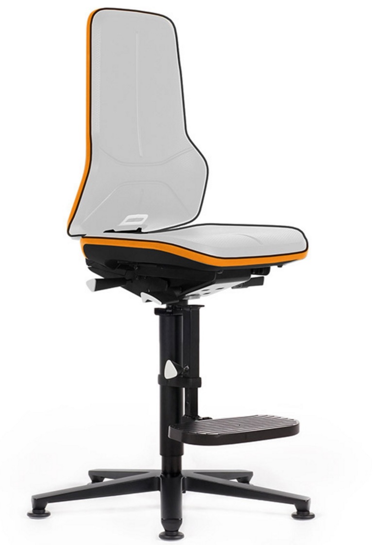 Neon to prawdopodobnie najlepsze krzesło do pracy w laboratoriach i pomieszczeniach ESD. Wszystkie plastikowe i metalowe części ESD Neon są czarne. Przyczyną tego jest fakt, że są przewodnikami, podobnie jak każdy inny komponent serii Neon. Plastik jest pokryty cząsteczkami węglowymi, aby przewodził prąd. Wyróżniającą cechą serii Neon jest pasek flex strip. Jest on wykonany z miękkiego plastiku, a służy do ochrony krzesła i jego otoczenia. Dostępne są cztery kolory paska. Samo krzesło wykonane jest ze stali i postawy z aluminium. Neon dostępny jest w wersji na kółkach albo z podkładkami ślizgowymi. Dodatkowo, dla wyższych modeli, dostępne są kółka Stop&Go. Wszystkie podkładki i kółka są przewodnikami objętościowymi. Neon występuje z trzema rodzajami obić ESD- Duotec ESD, ze skóry syntetycznej Magic ESD oraz z pianki ESD.
