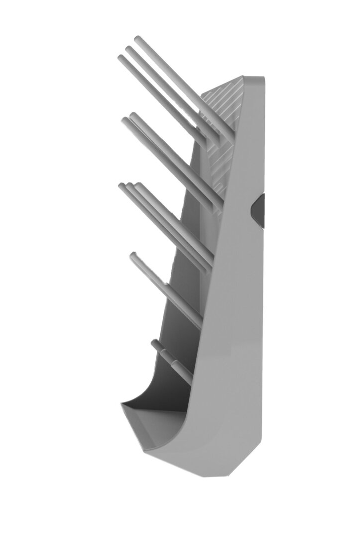 Wymiary ociekacza 300 x 450 mm, szerokość rynienki 135mm. Na płycie znajduje się 13 kołków. Ociekacz mozna zamontowac na blacie lub na ścianie, w ukladzie pojedynczym lub łączonym (modułowo). Akcesoria montażowe w zestawie.