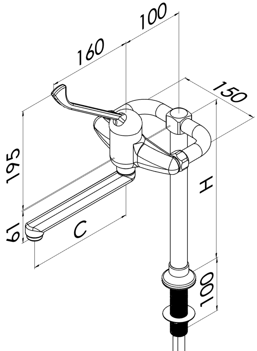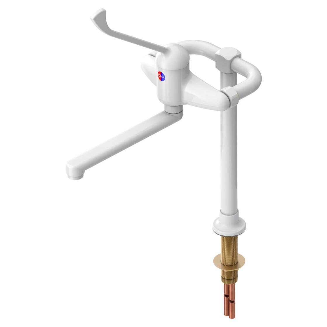 Jednuchwytowa bateria do wody na kolumnie z obrotową wylewką i dźwignią łokciową/ ręczną