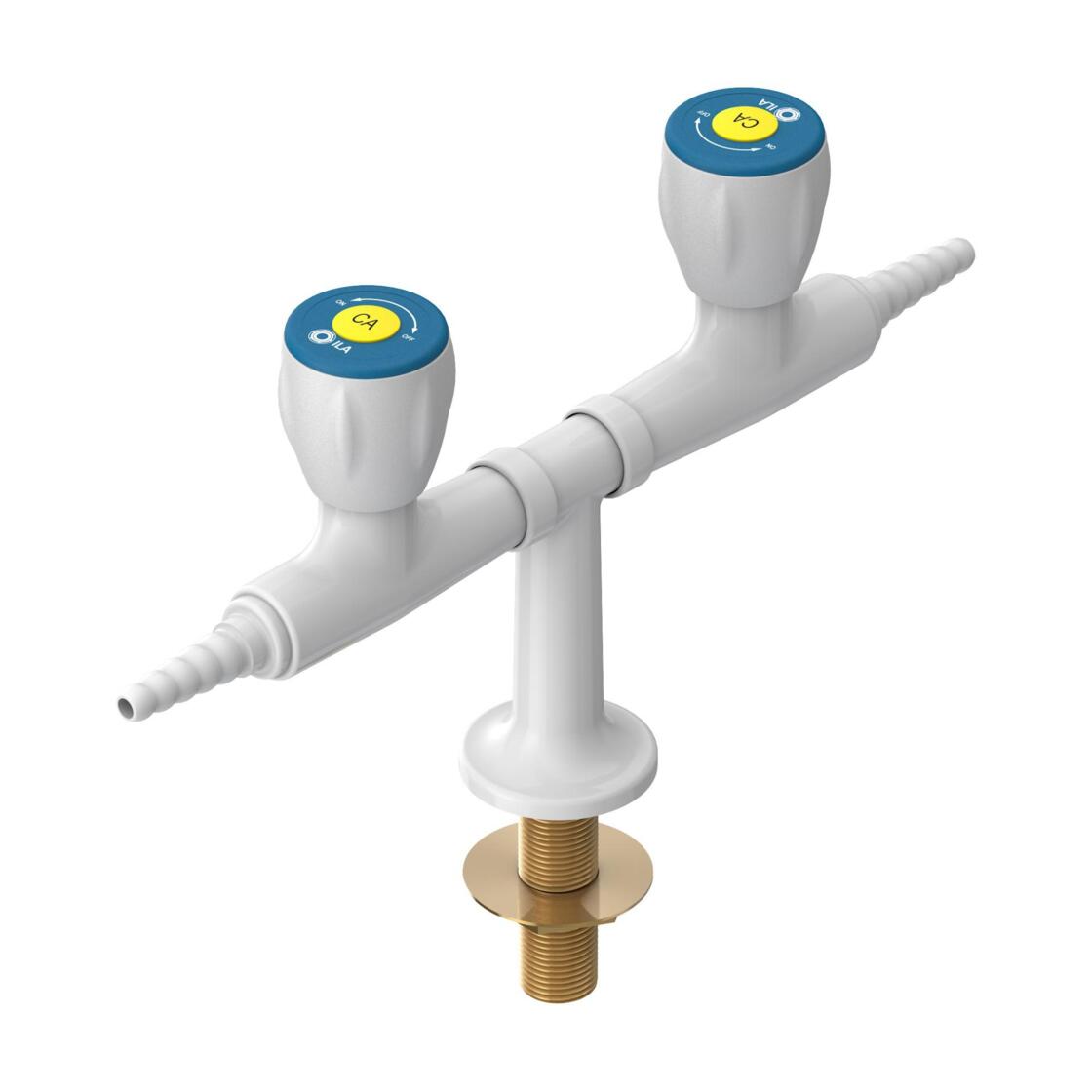 Podwójny zawór na gazy techniczne montowany na stole - 180 stopni