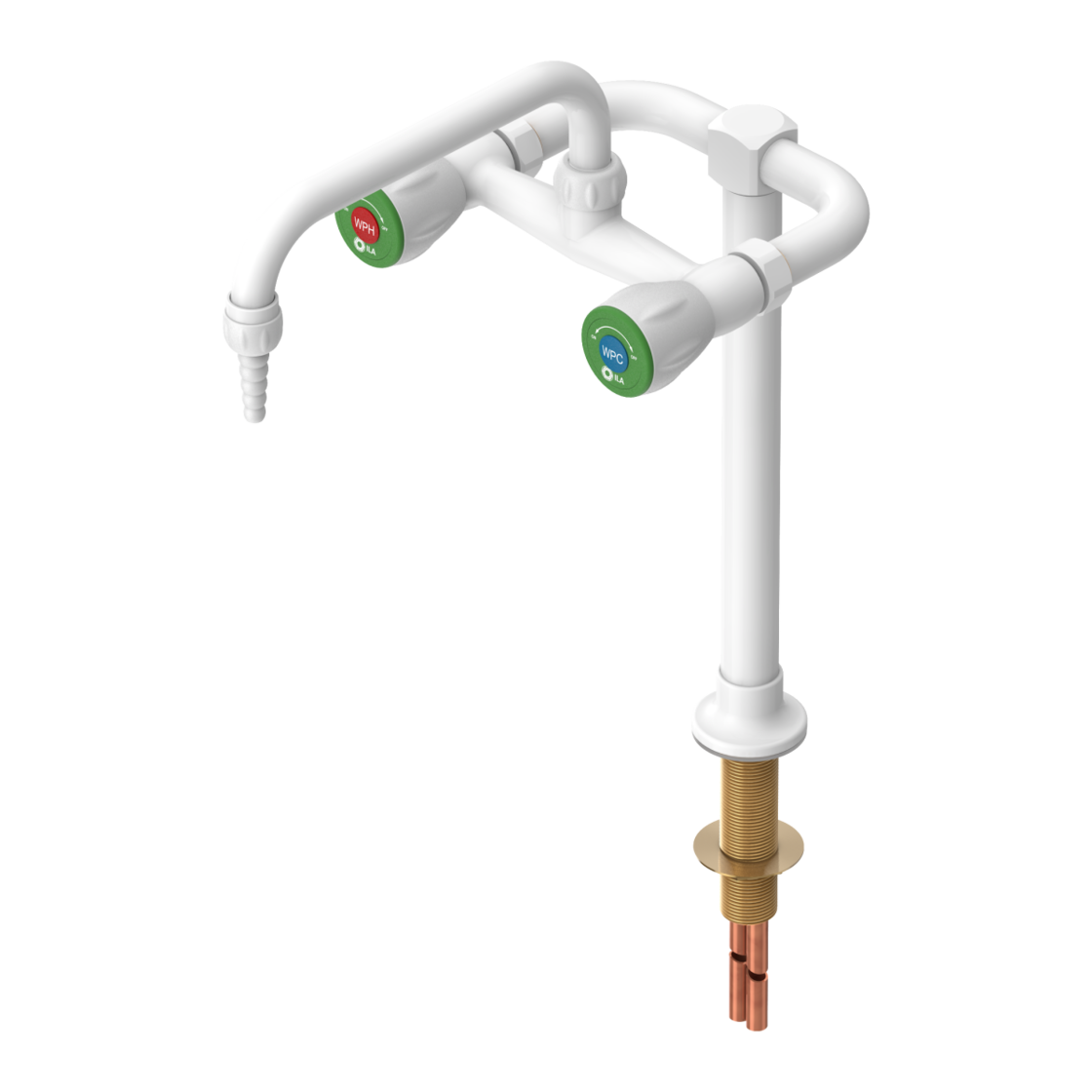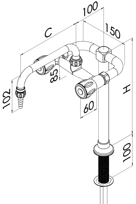 Bateria laboratoryjna do wody na kolumnie z obrotową wylewką i dwoma kurkami.