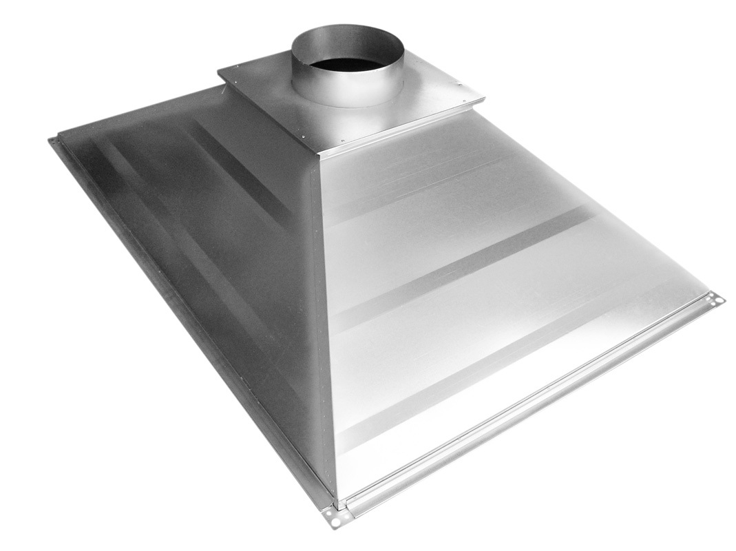 Okap laboratoryjny do montażu sufitowego, wykonany z blachy stalowej ocynkowanej. Służy do odprowadzania oparów w atmosferze korozyjnej.