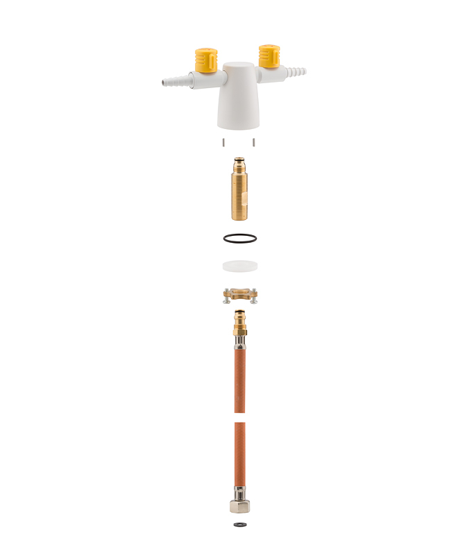 Opis • funkcja LIFT-TURN - unikalna blokada przed nieumyślnym uruchomieniem zaworu • zestaw montażowy z kołnierzem zabezpieczającym przed przekręceniem (VSF) • końcówka jest nieodkręcana