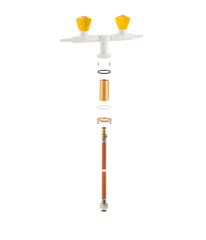 Montaż • pionowy, stołowy Opis • zabezpieczenie przed przypadkowym otwarciem zaworu Press & Turn [wciśnij i przekręć] • śruba wymienna 3/8" zgodnie z DIN 12898 • zestaw montażowy z kołkami blokującymi przed przekręceniem • końcówka jest nieodkręcana